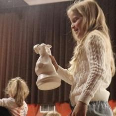 Óriási sikerrel mutattuk be a JÁTSSZ(MA) EGY KIRÁLYSÁGÉRT című legújabb meseelőadásunkat. A csatolt képen a szintén nagy sikert aratott előadások utáni "kelléksímogató" egy pillanata látható.